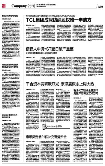 债权人申请*ST超日破产重整目前尚未找到重组接盘方,公司股票今起复牌 2014-04-08 来源:证券时报网 作者:仁际宇