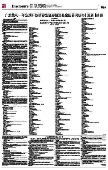 广发集利一年定期开放债券型证券投资基金招募说明书【更新】摘要