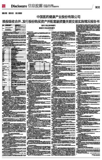 中国医药健康产业股份有限公司换股吸收合并、发行股份购买资产并配套融资暨关联交易实施情况报告书