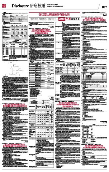 浙江亚太药业股份有限公司2013年度报告摘要 2014-04-12 来源:证券时报网 作者: