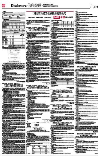 湖北京山轻工机械股份有限公司2013年度报告摘要 2014-04-12 来源:证券时报网 作者: