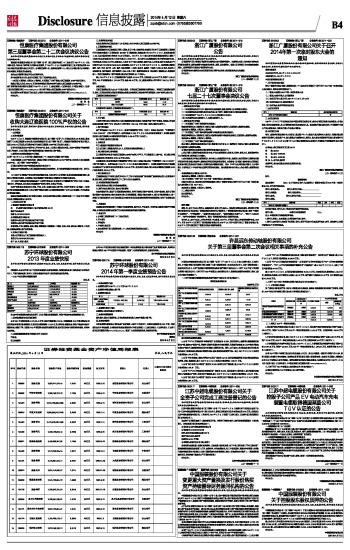 截止时间:2014年4月11日单位:人民币元 序号 基金代码 基金名称 基金资产净值 基金份额净值 基金规模 设立时间 管理人 托管人 未经审计单位拟分配收益 1 500005 基金汉盛 2,092,241,192.46 1.0461 20亿元 1999.5.10 富国基金管理有限公司 农业银行 2 500009 华安安顺封闭 3,388,768,213.78 1.1296 30亿元 1999.6.15 华安基金管理有限公司 交通银行 3 184692 基金裕隆 2,576,130,888.6300 0.8587 30亿元 1999.6.15 博时基金管理有限公司 农业银行 4 500018 华夏兴和封闭 2,888,666,945.5100 0.9629 30亿元 1999.7.14 华夏基金管理有限公司 建设银行 5 184693 基金普丰 2,475,610,530.1600 0.8252 30亿元 1999.7.14 鹏华基金管理有限公司 工商银行 6 184698 基金天元 2,789,429,962.46 0.9298 30亿元 1999.8.25 南方基金管理有限公司 工商银行 7 500011 国泰金鑫封闭 3,409,900,267.09 1.1366 30亿元 1999.10.21 国泰基金管理有限公司 建设银行 8 184699 基金同盛 3,173,228,356.16 1.0577 30亿元 1999.11.5 长盛基金管理有限公司 中国银行 9 184701 基金景福 2,770,984,192.44 0.9237 30亿元 1999.12.30 大成基金管理有限公司 农业银行 10 500015 基金汉兴 3,034,142,560.57 1.0114 30亿元 1999.12.30 富国基金管理有限公司 交通银行 11 500038 融通通乾封闭 2,161,759,004.23 1.0809 20亿元 2001.8.29 融通基金管理有限公司 建设银行 12 184728 基金鸿阳 1,709,623,784.62 0.8548 20亿元 2001.12.10 宝盈基金管理有限公司 农业银行 13 500056 易方达科瑞封闭 3,220,361,180.81 1.0735 30亿元 2002.3.12 易方达基金管理有限公司 交通银行 14 184721 嘉实丰和价值封闭 3,037,123,864.61 1.0124 30亿元 2002.3.22 嘉实基金管理有限公司 农业银行 15 184722 长城久嘉封闭 1,765,230,478.47 0.8826 20亿元 2002.7.5 长城基金管理有限公司 农业银行 16 500058 银河银丰封闭 2,822,160,190.12 0.9410 30亿元 2002.8.15 银河基金管理有限公司 建设银行 本版导读:
