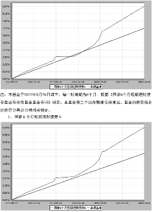 基金管理人:国泰基金管理有限公司 基金托管人:中国建设银行股份有限公司 报告送出日期:二〇一四年四月二十一日 §1 重要提示 基金管理人的董事会及董事保证本报告所载资料不存在虚假记载、误导性陈述或重大遗漏,并对其内容的真实性、准确性和完整性承担个别及连带责任。 基金托管人中国建设银行股份有限公司根据本基金合同规定,于2014年4月17日复核了本报告中的财务指标、净值表现和投资组合报告等内容,保证复核内容不存在虚假记载、误导性陈述或者重大遗漏。 基金管理人承诺以诚实信用、勤勉尽责的原则管理和运用基金资产,但不保证基金一定盈利。 基金的过往业绩并不代表其未来表现。投资有风险,投资者在作出投资决策前应仔细阅读本基金的招募说明书。 本报告中财务资料未经审计。 本报告期自2014年1月1日起至3月31日止。 §2 基金产品概况 ■ §3 主要财务指标和基金净值表现 3.1 主要财务指标 单位:人民币元 ■ 注:本期已实现收益指基金本期利息收入、投资收益、其他收入(不含公允价值变动收益)扣除相关费用后的余额,本期利润为本期已实现收益加上本期公允价值变动收益,由于货币市场基金采用摊余成本法核算,因此,公允价值变动收益为零,本期已实现收益和本期利润的金额相等。 3.2 基金净值表现 3.2.1 本报告期基金份额净值收益率及其与同期业绩比较基准收益率的比较 1、国泰6个月短期理财债券A: ■ 注:本基金收益分配按月结转份额。 2、国泰6个月短期理财债券B: ■ 注:本基金收益分配按月结转份额。 3.2.2自基金合同生效以来基金累计净值收益率变动及其与同期业绩比较基准收益率变动的比较 国泰6个月短期理财债券型证券投资基金 累计净值收益率与业绩比较基准收益率历史走势对比图 (2012年9月25日至2014年3月31日) 1、 国泰6个月短期理财债券A ■ 注:本基金于2012年9月25日成立,每一封闭期为6个月。根据《国泰6个月短期理财债券型证券投资基金基金合同》规定,本基金第三个运作期建仓结束后,基金的投资组合比例符合基金合同相关规定。 2、 国泰6个月短期理财债券B ■ 注:本基金于2012年9月25日成立,每一封闭期为6个月。根据《国泰6个月短期理财债券型证券投资基金基金合同》规定,本基金第三个运作期建仓结束后,基金的投资组合比例符合基金合同相关规定。 §4 管理人报告 4.1 基金经理(或基金经理小组)简介 ■ 注:1、此处的任职日期和离任日期均指公司决定生效之日,首任基金经理,任职日期为基金合同生效日。 2、证券从业的含义遵从行业协会《证券业从业人员资格管理办法》的相关规定。 4.2 报告期内本基金运作遵规守信情况说明 本报告期内,本基金管理人严格遵守《证券法》、《证券投资基金法》、《基金管理公司公平交易制度指导意见》等有关法律法规的规定,严格遵守基金合同和招募说明书约定,本着诚实信用、勤勉尽责、最大限度保护投资人合法权益等原则管理和运用基金资产,在控制风险的基础上为持有人谋求最大利益。 本报告期内,本基金未发生损害基金份额持有人利益的行为,投资运作符合法律法规和基金合同的规定,未发生内幕交易、操纵市场和不当关联交易及其他违规行为,信息披露及时、准确、完整,本基金与本基金管理人所管理的其他基金资产、投资组合与公司资产之间严格分开、公平对待,基金管理小组保持独立运作,并通过科学决策、规范运作、精心管理和健全内控体系,有效保障投资人的合法权益。 4.3 公平交易专项说明 4.3.1 公平交易制度的执行情况 本报告期内,本基金管理人严格遵守《证券投资基金管理公司公平交易制度指导意见》的相关规定,通过严格的内部风险控制制度和流程,对各环节的投资风险和管理风险进行有效控制,严格控制不同投资组合之间的同日反向交易,严格禁止可能导致不公平交易和利益输送的同日反向交易,确保公平对待所管理的所有基金和投资组合,切实防范利益输送行为。 4.3.2 异常交易行为的专项说明 本报告期内,本基金与本基金管理人所管理的其他投资组合未发生大额同日反向交易。本报告期内,未发现本基金有可能导致不公平交易和利益输送的异常交易。 4.4 报告期内基金的投资策略和业绩表现说明 4.4.1报告期内基金投资策略和运作分析 2014年第一季度,宏观经济呈现放缓趋势,继1-2月制造业PMI持续走弱之后3月略有回升,通胀较为平稳,货币政策维持宽松,央行在春节前夕逆回购放量操作,随后银行间市场资金面在2、3月份维持宽松的环境。7天回购一度回落至2.5%以下,一季度债券收益率持续下行,特别是中短端受到资金面影响收益率下行显著。国债到期收益率曲线回复陡峭化趋势。 在资金面宽松的环境下,货币市场利率持续走低,货币基金再投资收益率也逐步回归到正常水平。 本基金自2013年10月16日进入第三个封闭期,鉴于当时市场再投资收益率较高,以及基金规模较小频繁交易引起的交易费用对收益影响较大,综合考虑成本收益等因素,该基金在第三个封闭期主要采用资产匹配的投资策略,投资收益稳定。 4.4.2报告期内基金的业绩表现 国泰6个月短期理财债券A类在2014年第一季度的净值增长率为 1.0221%,同期业绩比较基准收益率为 0.6904%。 国泰6个月短期理财债券B类在2014年第一季度的净值增长率为 1.0941%,同期业绩比较基准收益