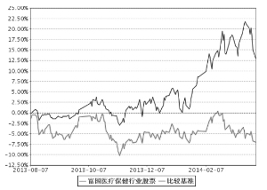 ■ §1 重要提示 ■ §2 基金产品概况 ■ §3 主要财务指标和基金净值表现 3.1 主要财务指标 单位: 人民币元 ■ 注:上述基金业绩指标不包括持有人认购或交易基金的各项费用(例如,开放式基金的申购赎回费、基金转换费等),计入费用后实际收益水平要低于所列数字。 本期已实现收益指基金本期利息收入、投资收益、其他收入(不含公允价值变动收益)扣除相关费用后的余额,本期利润为本期已实现收益加上本期公允价值变动收益。 3.2 基金净值表现 3.2.1 本报告期基金份额净值增长率及其与同期业绩比较基准收益率的比较 ■ 注:过去三个月指2014年1月1日-2014年3月31日 3.2.2 自基金合同生效以来基金累计份额净值增长率变动及其与同期业绩比较基准收益率变动的比较 ■ 注:注:截止日期为2014年3月31日,本基金于2013年08月07日成立,自合同生效日起至本报告期末不足一年。 本基金建仓期6个月,即从2013年08月07日至2014年02月06日止,建仓期结束时各项资产配置比例均符合基金合同约定。 §4 管理人报告 4.1 基金经理(或基金经理小组)简介 ■ 4.2 报告期内本基金运作遵规守信情况说明 本报告期,富国基金管理有限公司作为富国医疗保健行业股票型证券投资基金的管理人严格按照《中华人民共和国证券投资基金法》、《中华人民共和国证券法》、《富国医疗保健行业股票型证券投资基金基金合同》以及其它有关法律法规的规定,本着诚实信用、勤勉尽责的原则管理和运用基金资产,以尽可能减少和分散投资风险,确保基金资产的安全并谋求基金资产长期稳定的增长为目标,管理和运用基金资产,无损害基金持有人利益的行为,基金投资组合符合有关法规及基金合同的规定。 4.3 公平交易专项说明 4.3.1 公平交易制度的执行情况 本基金管理人根据相关法规要求,结合实际情况,制定了内部的《公平交易管理办法》,对证券的一级市场申购、二级市场交易相关的研究分析、投资决策、授权、交易执行、业绩评估等投资管理环节,实行事前控制、事中监控、事后评估及反馈的流程化管理。在制度、操作层面确保各组合享有同等信息知情权、均等交易机会,并保持各组合的独立投资决策权。 事前控制主要包括:1、一级市场,通过标准化的办公流程,对关联方审核、价格公允性判断及证券公平分配等相关环节进行控制;2、二级市场,通过交易系统的投资备选库、交易对手库及授权管理,对投资标的、交易对手和操作权限进行自动化控制。 事中监控主要包括组合间相同投资标的的交易方向、市场冲击的控制,银行间市场交易价格的公允性评估等。1、将主动投资组合的同日反向交易列为限制行为,非经特别控制流程审核同意,不得进行;对于同日同向交易,通过交易系统对组合间的交易公平性进行自动化处理。2、同一基金经理管理的不同组合,对同一投资标的采用相同投资策略的,必须通过交易系统采取同时、同价下达投资指令,确保公平对待其所管理的组合。 事后评估及反馈主要包括组合间同一投资标的的临近交易日的同向交易和反向交易的合理性分析评估,以及不同时间窗口下(1日、3日、5日)的季度公平性交易分析评估等。1、通过公平性交易的事后分析评估系统,对涉及公平性交易的投资行为进行分析评估,分析对象涵盖公募、年金、社保及专户产品,并重点分析同类组合(股票型、混合型、债券型)间、不同产品间以及同一基金经理管理不同组合间的交易行为,若发现异常交易行为,监察稽核部视情况要求相关当事人做出合理性解释,并按法规要求上报辖区监管机构。2、季度公平性交易分析报告按规定经基金经理或投资经理签字,并经督察长、总经理审阅签字后,归档保存,以备后查。 本报告期内公司旗下基金严格遵守公司的相关公平交易制度,未出现违反公平交易制度的情况。 4.3.2 异常交易行为的专项说明 本报告期内未发现异常交易行为。 公司旗下管理的各投资组合在交易所公开竞价同日反向交易的控制方面,报告期内本组合与其他投资组合之间,因组合流动性管理或投资策略调整需要,出现3次同日反向交易成交较少的单边交易量超过该证券当日成交量5%的情况。 4.4 报告期内基金的投资策略和业绩表现说明 4.4.1 报告期内基金投资策略和运作分析 14年一季度医药行业整体运行平稳趋缓,国家政策对医疗服务的支持力度较大,逐步放开民营资本进入和医疗支付等利好政策兑现。医药行业指数下跌2%左右,其中医疗服务和医疗器械表现好于行业指数。本基金投资方法上立足于自下而上,精选个股的原则,同时适当加大了对医疗器械的配置力度,取得了一定的收益。 4.4.2 报告期内基金的业绩表现 本报告期,本基金份额净值增长率为7.74%,同期业绩比较基准收益率为-3.14%。 §5 投资组合报告 5.1 报告期末基金资产组合情况 ■ 5.2 报告期末按行业分类的股票投资组合 ■ 5.3 报告期末按公允价值占基金资产净值比例大小排序的前十名股票投资明细 ■ 5.4 报告期末按债券品种分类的债券投资组合 注:本基金本报告期末未持有债券资产。 5.5 报告期末按公允价值占基金资产净值比例大小排名的前五名债券投资明细 注:本基金本报告期末未持有债券资产。 5.6 报告期末按公允价值占基金资产净值比例大小排名的前十名资产支持证券投资明细 注:本基金本报告期末未持有资产支持证