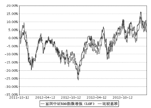 ■ §1 重要提示 ■ §2 基金产品概况 ■ §3 主要财务指标和基金净值表现 3.1 主要财务指标 单位: 人民币元 ■ 注:上述基金业绩指标不包括持有人认购或交易基金的各项费用(例如,开放式基金的申购赎回费、基金转换费等),计入费用后实际收益水平要低于所列数字。 本期已实现收益指基金本期利息收入、投资收益、其他收入(不含公允价值变动收益)扣除相关费用后的余额,本期利润为本期已实现收益加上本期公允价值变动收益。 3.2 基金净值表现 3.2.1 本报告期基金份额净值增长率及其与同期业绩比较基准收益率的比较 ■ 注:过去三个月指2014年1月1日-2014年3月31日 3.2.2 自基金合同生效以来基金累计份额净值增长率变动及其与同期业绩比较基准收益率变动的比较 ■ 注:1.截止日期为2014年3月31日。 2.本基金于2011年10月12日成立,建仓期6个月,从2011年10月12日至2012年4月11日,建仓期结束时各项资产配置比例均符合基金合同约定。 §4 管理人报告 4.1 基金经理(或基金经理小组)简介 ■ 4.2 报告期内本基金运作遵规守信情况说明 本报告期,富国基金管理有限公司作为富国中证500指数增强型证券投资基金(LOF)的管理人严格按照《中华人民共和国证券投资基金法》、《中华人民共和国证券法》、《富国中证500指数增强型证券投资基金(LOF)基金合同》以及其它有关法律法规的规定,本着诚实信用、勤勉尽责的原则管理和运用基金资产,以尽可能减少和分散投资风险,确保基金资产的安全并谋求基金资产长期稳定的增长为目标,无损害基金持有人利益的行为,基金投资组合符合有关法规及基金合同的规定。 4.3 公平交易专项说明 4.3.1 公平交易制度的执行情况 本基金管理人根据相关法规要求,结合实际情况,制定了内部的《公平交易管理办法》,对证券的一级市场申购、二级市场交易相关的研究分析、投资决策、授权、交易执行、业绩评估等投资管理环节,实行事前控制、事中监控、事后评估及反馈的流程化管理。在制度、操作层面确保各组合享有同等信息知情权、均等交易机会,并保持各组合的独立投资决策权。 事前控制主要包括:1、一级市场,通过标准化的办公流程,对关联方审核、价格公允性判断及证券公平分配等相关环节进行控制;2、二级市场,通过交易系统的投资备选库、交易对手库及授权管理,对投资标的、交易对手和操作权限进行自动化控制。 事中监控主要包括组合间相同投资标的的交易方向、市场冲击的控制,银行间市场交易价格的公允性评估等。1、将主动投资组合的同日反向交易列为限制行为,非经特别控制流程审核同意,不得进行;对于同日同向交易,通过交易系统对组合间的交易公平性进行自动化处理。2、同一基金经理管理的不同组合,对同一投资标的采用相同投资策略的,必须通过交易系统采取同时、同价下达投资指令,确保公平对待其所管理的组合。 事后评估及反馈主要包括组合间同一投资标的的临近交易日的同向交易和反向交易的合理性分析评估,以及不同时间窗口下(1日、3日、5日)的季度公平性交易分析评估等。1、通过公平性交易的事后分析评估系统,对涉及公平性交易的投资行为进行分析评估,分析对象涵盖公募、年金、社保及专户产品,并重点分析同类组合(股票型、混合型、债券型)间、不同产品间以及同一基金经理管理不同组合间的交易行为,若发现异常交易行为,监察稽核部视情况要求相关当事人做出合理性解释,并按法规要求上报辖区监管机构。2、季度公平性交易分析报告按规定经基金经理或投资经理签字,并经督察长、总经理审阅签字后,归档保存,以备后查。 本报告期内公司旗下基金严格遵守公司的相关公平交易制度,未出现违反公平交易制度的情况。 4.3.2 异常交易行为的专项说明 本报告期内未发现异常交易行为。 公司旗下管理的各投资组合在交易所公开竞价同日反向交易的控制方面,报告期内本组合与其他投资组合之间未出现成交较少的单边交易量超过该证券当日成交量5%的情况,亦未受到监管机构的相关调查。 4.4 报告期内基金的投资策略和业绩表现说明 4.4.1 报告期内基金投资策略和运作分析 回顾2014年一季度,整体经济运行整体平稳,物价也维持稳定水平,但所面临的经济依然错综复杂。系统性信用风险成为投资者对于经济最主要的担心,超日债的违约并不具有典型代表性,但未来两个季度将迎来各种信用产品集中兑付期,市场对于信用风险并不持乐观态度。未来IPO重新开闸后的资金抽离效应也对投资者情绪形成一定压制。一季度市场表现低迷,并且波动较大,中证500整体上涨0.30%,振幅达到16.82%。 在投资管理上,我们坚持采取量化策略进行指数增强和风险管理,量化增强策略获得了较好的表现,报告期内,本基金的超额收益为0.09%。本基金在报告期内遇到多次申购赎回,在一定程度上增加了本基金的交易成本。 展望2014年二季度,产业结构调整、财税体制改革、对外经济开放、国企改革、新兴城镇化和金融改革等重点改革方向有望加速推进。货币信贷政策仍将稳中偏紧,投资者需要密切关注地方政府融资平台和影子银行监管等事件性风险。预计二季度市场整体走势将略好于一季度,改革的逐渐兑现将使得投资者对于经济的信心有系统性的回升,同时也需要密切关注市场大小盘风格的切换。 4.4.2 报告期内基