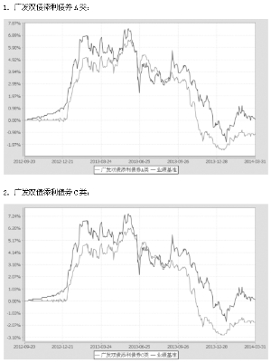 基金管理人:广发基金管理有限公司 基金托管人:中国银行股份有限公司 报告送出日期:二〇一四年四月二十一日 §1 重要提示 基金管理人的董事会及董事保证本报告所载资料不存在虚假记载、误导性陈述或重大遗漏,并对其内容的真实性、准确性和完整性承担个别及连带责任。 基金托管人中国银行股份有限公司根据本基金合同规定,于2014年4月16日复核了本报告中的财务指标、净值表现和投资组合报告等内容,保证复核内容不存在虚假记载、误导性陈述或者重大遗漏。 基金管理人承诺以诚实信用、勤勉尽责的原则管理和运用基金资产,但不保证基金一定盈利。 基金的过往业绩并不代表其未来表现。投资有风险,投资者在作出投资决策前应仔细阅读本基金的招募说明书。 本报告中财务资料未经审计。 本报告期自2014年1月1日起至3月31日止。 §2 基金产品概况 ■ §3 主要财务指标和基金净值表现 3.1 主要财务指标 单位:人民币元 ■ 注:(1)所述基金业绩指标不包括持有人认购或交易基金的各项费用,计入费用后实际收益水平要低于所列数字。 (2)本期已实现收益指基金本期利息收入、投资收益、其他收入(不含公允价值变动收益)扣除相关费用后的余额,本期利润为本期已实现收益加上本期公允价值变动收益。 3.2 基金净值表现 3.2.1本报告期基金份额净值增长率及其与同期业绩比较基准收益率的比较 1、广发双债添利债券A类: ■ 2、广发双债添利债券C类: ■ 3.2.2 自基金合同生效以来基金累计净值增长率变动及其与同期业绩比较基准收益率变动的比较 广发双债添利债券型证券投资基金 累计净值增长率与业绩比较基准收益率的历史走势对比图 (2012年9月20日至2014年3月31日) ■ 注:本基金建仓期为基金合同生效后6个月,建仓期结束时各项资产配置比例符合本基金合同有关规定。 §4 管理人报告 4.1 基金经理(或基金经理小组)简介 ■ 注:1.“任职日期”和“离职日期”指公司公告聘任或解聘日期。 2.证券从业的含义遵从行业协会《证券业从业人员资格管理办法》的相关规定。 4.2报告期内本基金运作遵规守信情况说明 本报告期内,本基金管理人严格遵守《中华人民共和国证券投资基金法》及其配套法规、《广发双债添利债券型证券投资基金基金合同》和其他有关法律法规的规定,本着诚实信用、勤勉尽责的原则管理和运用基金资产,在严格控制风险的基础上,为基金份额持有人谋求最大利益。本报告期内,基金运作合法合规,无损害基金持有人利益的行为,基金的投资管理符合有关法规及基金合同的规定。 4.3 公平交易专项说明 4.3.1 公平交易制度的执行情况 公司通过建立科学、制衡的投资决策体系,加强交易分配环节的内部控制,并通过实时的行为监控与及时的分析评估,保证公平交易原则的实现。 在投资决策的内部控制方面,公司制度规定投资组合投资的股票必须来源于备选股票库,重点投资的股票必须来源于核心股票库。公司建立了严格的投资授权制度,投资组合经理在授权范围内可以自主决策,超过投资权限的操作需要经过严格的审批程序。在交易过程中,中央交易部按照“时间优先、价格优先、比例分配、综合平衡”的原则,公平分配投资指令。监察稽核部风险控制岗通过投资交易系统对投资交易过程进行实时监控及预警,实现投资风险的事中风险控制;稽核岗通过对投资、研究及交易等全流程的独立监察稽核,实现投资风险的事后控制。 本报告期内,上述公平交易制度总体执行情况良好,不同的投资组合受到了公平对待,未发生任何不公平的交易事项。 4.3.2 异常交易行为的专项说明 本公司原则上禁止不同投资组合之间(完全按照有关指数的构成比例进行证券投资的投资组合除外)或同一投资组合在同一交易日内进行反向交易。如果因应对大额赎回等特殊情况需要进行反向交易的,则需经公司领导严格审批并留痕备查。 本报告期内,本投资组合与本公司管理的其他投资组合未发生过同日反向交易的情况。 4.4 报告期内基金的投资策略和业绩表现说明 4.4.1报告期内基金投资策略和运作分析 2014年1季度,经济基本面出现明显衰退迹象,2月通胀率一度跌破2%,宏观数据方面出现了增长和通胀的双回落。在这样的背景下,央行一改之前偏紧的货币操作,通过扩大SLO的使用范围、对回购利率进行窗口指导等方式维稳资金面,资金利率创出近一年内的新低。 中长期利率债和高等级信用债的收益率整体走出V型行情,而中低等级信用债分化严重,超日以及多家中小企业私募债无法偿付利息的事件加重了市场对于部分民企违约风险的担忧,民企以及信用评级偏弱的城投和国企发行的信用债遭受严重抛压。可转债方面,整体延续震荡行情,缺乏系统性行情,只有部分个券,比如石化、隧道、东华等出现了10%以上的绝对收益机会。 基于信用利差已经处于低位以及中低等级信用债的信用暴露仍会继续的判断,本基金在1季度中主要做的是降低信用债的仓位,将部分中等资质的中长期债券置换为短期债券,同时,提高中等期限利率债的配置仓位。 4.4.2报告期内基金的业绩表现 广发双债添利A类本报告期净值增长率为1.12%,业绩比较基准收益率为0.14%;广发双债添利C类本报告期净值增长率为0.92%,业绩比较基准收益率为0.14%。 4.5管理人对宏观经济、证券市场及行业走势的简要展望