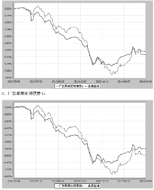 基金管理人:广发基金管理有限公司 基金托管人:中国农业银行股份有限公司 报告送出日期:二〇一四年四月二十一日 §1 重要提示 基金管理人的董事会及董事保证本报告所载资料不存在虚假记载、误导性陈述或重大遗漏,并对其内容的真实性、准确性和完整性承担个别及连带责任。 基金托管人中国农业银行股份有限公司根据本基金合同规定,于2014年4月16日复核了本报告中的财务指标、净值表现和投资组合报告等内容,保证复核内容不存在虚假记载、误导性陈述或者重大遗漏。 基金管理人承诺以诚实信用、勤勉尽责的原则管理和运用基金资产,但不保证基金一定盈利。 基金的过往业绩并不代表其未来表现。投资有风险,投资者在作出投资决策前应仔细阅读本基金的招募说明书。 本报告中财务资料未经审计。 本报告期自2014年1月1日起至3月31日止。 §2 基金产品概况 ■ §3 主要财务指标和基金净值表现 3.1 主要财务指标 单位:人民币元 ■ 注:(1)本期已实现收益指基金本期利息收入、投资收益、其他收入(不含公允价值变动收益)扣除相关费用后的余额,本期利润为本期已实现收益加上本期公允价值变动收益。 (2)上述基金业绩指标不包括持有人认购或交易基金的各项费用,计入费用后实际收益水平要低于所列数字。 3.2 基金净值表现 3.2.1本报告期基金份额净值增长率及其与同期业绩比较基准收益率的比较 1、广发聚源定期债券A: ■ 2、广发聚源定期债券C: ■ 3.2.2 自基金合同生效以来基金累计净值增长率变动及其与同期业绩比较基准收益率变动的比较 广发聚源定期开放债券型证券投资基金 累计净值增长率与业绩比较基准收益率的历史走势对比图 (2013年5月8日至2014年3月31日) 1.广发聚源定期债券A: ■ 注:(1)本基金合同生效日为2013年5月8日,至披露时点本基金成立未满一年。 (2)本基金建仓期为基金合同生效后6个月,建仓期结束时各项资产配置比例符合本基金合同有关规定。 §4 管理人报告 4.1 基金经理(或基金经理小组)简介 ■ 注:1.基金经理的“任职日期”和“离职日期”指公司公告聘任或解聘日期。 2.基金经理助理的“任职日期”和“离任日期”分别指根据公司决定确定的聘任日期和解聘日期。 3.证券从业的含义遵从行业协会《证券业从业人员资格管理办法》的相关规定。 4.2报告期内本基金运作遵规守信情况说明 本报告期内,本基金管理人严格遵守《中华人民共和国证券投资基金法》及其配套法规、《广发聚源定期债券型证券投资基金基金合同》和其他有关法律法规的规定,本着诚实信用、勤勉尽责的原则管理和运用基金资产,在严格控制风险的基础上,为基金份额持有人谋求最大利益。本报告期内,基金运作合法合规,无损害基金持有人利益的行为,基金的投资管理符合有关法规及基金合同的规定。 4.3 公平交易专项说明 4.3.1 公平交易制度的执行情况 公司通过建立科学、制衡的投资决策体系,加强交易分配环节的内部控制,并通过实时的行为监控与及时的分析评估,保证公平交易原则的实现。 在投资决策的内部控制方面,公司制度规定投资组合投资的股票必须来源于备选股票库,重点投资的股票必须来源于核心股票库。公司建立了严格的投资授权制度,投资组合经理在授权范围内可以自主决策,超过投资权限的操作需要经过严格的审批程序。在交易过程中,中央交易部按照“时间优先、价格优先、比例分配、综合平衡”的原则,公平分配投资指令。监察稽核部风险控制岗通过投资交易系统对投资交易过程进行实时监控及预警,实现投资风险的事中风险控制;稽核岗通过对投资、研究及交易等全流程的独立监察稽核,实现投资风险的事后控制。 本报告期内,上述公平交易制度总体执行情况良好,不同的投资组合受到了公平对待,未发生任何不公平的交易事项。 4.3.2 异常交易行为的专项说明 本公司原则上禁止不同投资组合之间(完全按照有关指数的构成比例进行证券投资的投资组合除外)或同一投资组合在同一交易日内进行反向交易。如果因应对大额赎回等特殊情况需要进行反向交易的,则需经公司领导严格审批并留痕备查。 本报告期内,本投资组合与本公司管理的其他投资组合未发生过同日反向交易的情况。 4.4 报告期内基金的投资策略和业绩表现说明 4.4.1报告期内基金投资策略和运作分析 一季度基本面最大的特点:宏观经济明显走弱、货币政策转为中性。从公开市场的表现看,央行的货币政策有微调,从去年持续从紧转为中性,银行间7天回购利率中枢下移100bp左右,回归到去年前两个季度的水平。不过由于政策并不透明,而且波动较大,引发市场预期大幅波动。年初在极度宽松的资金面下,市场变得过于乐观,1-2月5年金融债收益率下行70bp,3月偏差的宏观数据反而引发市场担心“宽财政、紧货币”重现,收益率反弹了前期降幅的50%。 信用债市场悄然发生了结构性变化。在刚性兑付被逐步打破的背景下,财务资质较差的民营和周期类品种风险溢价开始大幅度上升。我们预计,当前信用溢价的震荡上升以及逐步扩散是个大趋势的开始。 在一季度,我们大幅减持了信用品种,提高了利率品种比例,规避信用风险,保持了一定得久期。 4.4.2报告期内基金的业绩表现 广发聚源定期开放A本季度收益为1.94%,广发聚源定期开放C本季度收益为1.83%,业绩比