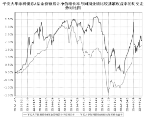 基金管理人:平安大华基金管理有限公司 基金托管人:中国银行股份有限公司 报告送出日期:2014年4月22日 §1 重要提示 基金管理人的董事会及董事保证本报告所载资料不存在虚假记载、误导性陈述或重大遗漏,并对其内容的真实性、准确性和完整性承担个别及连带责任。 基金托管人中国银行股份有限公司根据本基金合同规定,于2014年4月17日复核了本报告中的财务指标、净值表现和投资组合报告等内容,保证复核内容不存在虚假记载、误导性陈述或者重大遗漏。 基金管理人承诺以诚实信用、勤勉尽责的原则管理和运用基金资产,但不保证基金一定盈利。 基金的过往业绩并不代表其未来表现。投资有风险,投资者在作出投资决策前应仔细阅读本基金的招募说明书。 本报告中财务资料未经审计。 本报告期自2014年1月1日起至3月31日止。 §2 基金产品概况 ■ §3 主要财务指标和基金净值表现 3.1 主要财务指标 单位:人民币元 ■ 注:1.本期已实现收益指基金本期利息收入、投资收益、其他收入(不含公允价值变动收益)扣除相关费用后的余额,本期利润为本期已实现收益加上本期公允价值变动收益; 2.所述基金业绩指标不包括持有人认购或交易基金的各项费用,计入费用后实际收益水平要低于所列数字。 3.2 基金净值表现 3.2.1 本报告期基金份额净值增长率及其与同期业绩比较基准收益率的比较 平安大华添利债券A ■ 平安大华添利债券C ■ 3.2.2 自基金合同生效以来基金累计净值增长率变动及其与同期业绩比较基准收益率变动的比较 ■ ■ 1、本基金基金合同于2012年11月27日正式生效,截至报告期末已满一年; 2、按照本基金的基金合同规定,基金管理人应当自基金合同生效之日起六个月内使基金的投资组合比例符合基金合同的约定,截至报告期末本基金已完成建仓。 §4 管理人报告 4.1 基金经理(或基金经理小组)简介 ■ 1、此处的“任职日期”为基金合同生效之日,“离任日期”为公告确定的解聘日期。 2、证券从业的含义遵从行业协会《证券业从业人员资格管理办法》的相关规定。 4.2 管理人对报告期内本基金运作遵规守信情况的说明 在本报告期内,本基金管理人严格遵循了《中华人民共和国证券投资基金法》及其各项实施细则、《平安大华添利债券型证券投资基金基金合同》和其他相关法律法规的规定,并本着诚实信用、勤勉尽责、取信于市场、取信于社会的原则管理和运用基金资产,为基金持有人谋求最大利益。本报告期内,基金投资管理符合有关法规和基金合同的规定,没有损害基金持有人利益的行为。 4.3 公平交易专项说明 4.3.1 公平交易制度的执行情况 报告期内,本基金管理人严格执行了《证券投资基金管理公司公平交易制度指导意见》和公司制定的公平交易相关制度。 4.3.2 异常交易行为的专项说明 本基金于本报告期内不存在异常交易行为。 报告期内,所有投资组合参与的交易所公开竞价同日反向交易成交较少的单边交易量未超过该证券当日成交量的5%。 4.4 报告期内基金的投资策略和业绩表现说明 4.4.1 报告期内基金投资策略和运作分析 2014年1季度在严格控制个券风险的前提下,增加了可转债投资比例,并适时进行了风格转换,从TMT、军工及时转为大盘及中盘转债。一季度流动性宽松推动债券走出了牛陡行情,本基金择机减仓了利率债进行止盈;出于对债券市场信用风险逐渐暴露的判断,在节后流动性较为宽松的阶段降低了信用债的仓位。 4.4.2 报告期内基金的业绩表现 截至2014年3月31日,本基金A份额净值为1.021元,份额累计净值为1.021元。报告期内,本基金份额净值增长率为1.69%,同期业绩基准增长率为2.66%。本基金C份额净值为1.014元,份额累计净值为1.014元。报告期内,本基金份额净值增长率为1.60%,同期业绩基准增长率为2.66%。 4.5 管理人对宏观经济、证券市场及行业走势的简要展望 2014年开年经济全面回落,一季度GDP低于7.5%已成定局,基于此,决策当局在历经半年之后重提稳增长,稳增长的政策手段和具体措施,依稀可见2013年下半年的影子,但又有不同, 2013年经济已现短期出清迹象,政策出手更具“顺势而为”的特征,但2014年经济尚未调整完毕,故此次调整的“逆周期”出手更早,预计经济下滑的惯性会提前结束,2季末会有反弹。对于货币政策而言,虽然名曰稳增长,但调结构并未放弃,因此更倚重财政政策,预计货币政策云淡风轻,2季度不具备降准的时机和迫切性。基于上述判断,2季度债券投资以防御为主,短期金融债保护较高,继续保持信用债的低仓位。对于权益投资,政策放松预期和流动性适度宽松增加了市场对传统周期的追逐,本基金逐渐进行风格转换,适度增加大盘蓝筹转债的配置。 §5 投资组合报告 5.1 报告期末基金资产组合情况 ■ 5.2 报告期末按行业分类的股票投资组合 本基金本报告期末未持有股票 。 5.3 报告期末按公允价值占基金资产净值比例大小排序的前十名股票投资明细 本基金本报告期末未持有股票 。 5.4 报告期末按债券品种分类的债券投资组合 ■ 5.5 报告期末按公允价值占基金资产净值比例大小排序的前五名债券投资明细 ■ 5.6 报告期末按公允价值占基金资产净值比例大小排序的前十名资产支持证券投资明细 本基金本报告期末无资产支持证券投资。 5.7 报告期末按公允价值占基金资产净值比例大小排序的前五名贵
