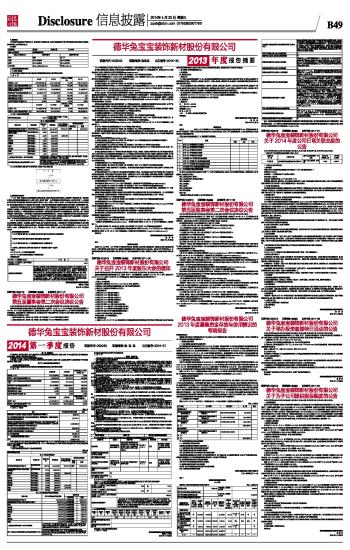 德华兔宝宝装饰新材股份有限公司2014第一季度报告 2014-04-23 来源:证券时报网 作者: