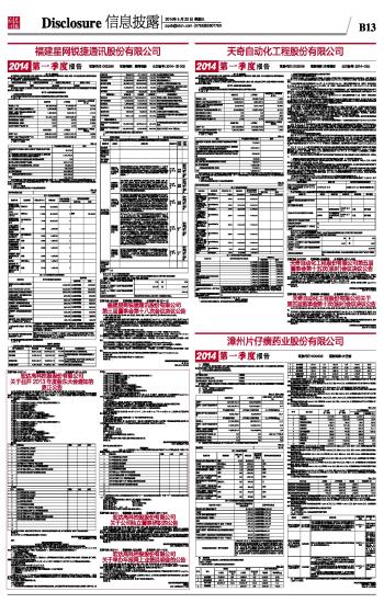 天奇自动化工程股份有限公司2014第一季度报告 2014-04-23 来源:证券时报网 作者: