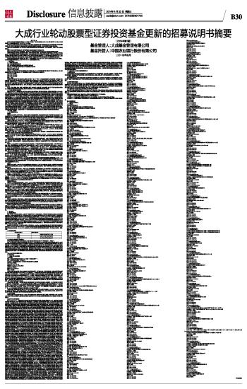 大成行业轮动股票型证券投资基金更新的招募说明书摘要 2014-04-23 来源:证券时报网 作者: