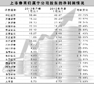 证券时报记者 张欣然 2013年年报披露渐进尾声,各上市券商业绩浮出水面。 Wind资讯数据显示,19家上市券商共实现营业收入793.70亿元,同比增长25.55%;共实现净利润241.22亿元,同比增长32.37%。 分析人士称,近年来证券行业传统通道业务的利润空间逐步收窄,券商投行业务又受到首发募股(IPO)暂停的影响普遍下滑,但2013年券商加大了对创新业务的投入,从而产生新的利润增长点。 19家券商净利 占全行业半壁江山 截至4月22日晚间,19家上市券商中仅西部证券和太平洋未正式披露年报,但从其业绩快报中仍可以得到其2013年业绩概况。 据Wind资讯统计,19家上市券商共实现营业收入793.70亿元,平均每家券商实现营收41.77亿元;而同期全行业115家券商累计营收1592.41亿元,平均每家券商营收13.85亿元,低于上市券商营收平均值近七成。 其中,全年营收最高的是中信证券,达161.15亿元;海通证券紧随其后,为104.55亿元;广发证券位居第三,全年实现营收82.08亿元。此外,还有太平洋、西部证券、山西证券、国金证券等9家券商全年营收不足20亿元。 从净利润来看,19家上市券商2013年实现净利润241.22亿元,同比增长32.37%;在同期全行业115家券商实现440.21亿元净利润中,上市券商占比54.8%。 其中,光大证券受去年8月16日的“乌龙指”事件影响,2013年净利同比下跌79.48%,其余18家上市券商净利润均实现正增长。东北、国海、西部净利润增长均超过100%,分别为218.76%、131.52%、115.33%;而方正、西南、山西和国元四家券商净利润同比增幅也超过50%。 东北证券将营业收入和净利同比大增归因于融资融券、约定购回式证券交易、股票质押式回购等各项创新业务均取得了较好的收益。除东北证券外,不少券商也将净利润增长的原因归结于创新业务带来的收益。 尽管19家上市券商业绩占据全行业大半壁江山,但与银行相比仍逊色不少。 上市券商2013年盈利总额不敌一家光大银行,比光大银行267.15亿元的净利润少了25.93亿元。 而与最赚钱的工商银行相比,19家上市券商利润总额仅占其净利润的9.2%,而全行业115家券商净利润总额也仅占工商银行净利润的16.7%。 创新业务势头正盛 由于证券市场不景气、行业内竞争加剧,原本作为券商经纪业务顶梁柱的佣金收入明显下滑。融资融券、代销金融产品等创新业务领域的持续开拓,成为券商2013年业绩普增的动力来源。 一位资深行业分析师称,如果不是传统经纪业务下滑加之IPO暂停的影响,上市券商去年的业绩表现会更出色。 据Wind资讯统计,2013年度17家上市券商(不包括未披露年报的西部证券和太平洋)代理买卖证券业务净收入330.61亿元,比去年同期增长了56.77%;手续费及佣金净收入474.26亿元,比去年同比356.21亿元增长33.14%;代理买卖证券业务净收入全线飘红,同比增加幅在39%~92%之间。 代理买卖证券业务收入增幅最大的为中信证券,达92.46%;宏源、兴业、海通紧随其后,代理买卖证券业务收入增幅均超70%。 对于代理买卖证券业务收入增长的原因,大多数券商在年报中的解释与方正证券相似。 方正在年报中称,代理买卖证券业务收入同比增长50.28%,主要是受经纪业务交易量增加及融资融券业务的开展等因素影响。 年报显示,截至2013年底,山西证券公司融资融券余额达15.43亿元,同比大幅增长749.24%。融资融券业务全年实现利息收入6418.56万元;国元证券2013年类贷款业务收入也实现爆发式增长,其中证券信用业务整体收入3.23亿元,同比增长406.3%,占公司总收入的比重达16.26%;而东吴证券去年信用交易业务营业收入1.02亿元,同比增长838.71%。 事实上,自首届券商创新大会召开以来,两融、股权质押等类贷款业务已逐渐成为券商最赚钱的业务之一。不少分析人士表示,未来两年券商的类贷款业务将飞速增长,预计贡献度将直追传统经纪业务。 此外,部分券商业绩飙升则益于自营业务及资管业务的增长。 以东北证券为例,年报显示,由于市场成交总量的增长,公司证券经纪业务收入同比增长41.01%,公司证券自营业务实行多元化布局,取得了较好的投资收益,自营业务收入同比增长66.18%。此外,公司资产管理业务向大理财平台转型,收入同比增加68.01%。 券商证券承销业务 收入微增3% 与经纪业务的普涨不同,受IPO停滞影响,上市券商投行业务收入分化较为明显。 据Wind资讯统计,2013年17家上市券商证券承销收入合计74.24亿元,同比微增3.13%。其中,国海、兴业、方正等10家券商证券承销业务净收入实现正增长;而广发、国金、东吴等上市券商承销业务净收入则出现不同程度的下滑。 此外,上市券商投行业务结构也出现明显调整,投行业务结构逐渐由IPO项目向债券市场倾斜。 兴业证券年报称,其投资银行业务手续费净收入增长78.36%,主要是证券承销业务规模增加而致。据了解,兴业证券2013年度债券融资业务完成主承销25单企业债、公司债、金融债和中小企业私募债项目,实际主承销金额达196.3亿元。 2013年,光大证券受乌龙指和天丰节能等事件的影响,在非金融企业债务融资工具主承销资格被暂停。相关投行业务开展受制约的背景下,光大证券累计完成股票及债券承销541亿元,实现营业收入2.44亿元,同比增长37%。 光大证券年报称,报告期内,面对IPO停滞困境,投行业务有序推进股转业务,积极备战股转系统全国扩容,完成5家新三板企业挂牌;加大股票再融资和债券融资力度,努力拓宽固定收益承销业务产品线,股票