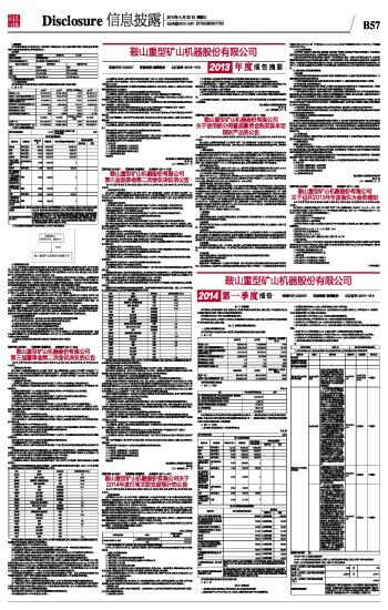 鞍山重型矿山机器股份有限公司2014第一季度报告