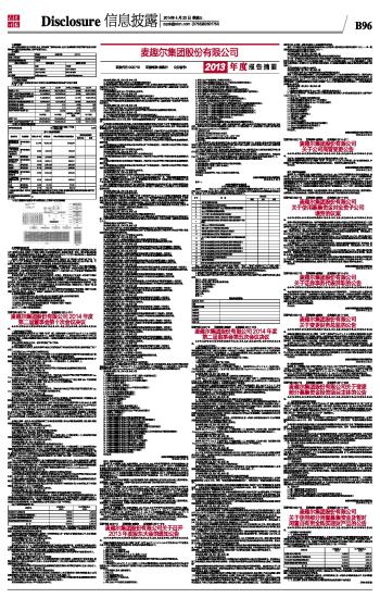 麦趣尔集团股份有限公司2013年度报告摘要