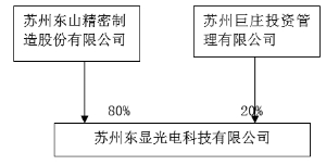 证券代码:002384 证券简称:东山精密 公告编号:2014-025 苏州东山精密制造股份有限公司 对外担保公告 本公司及董事会全体成员保证信息披露的内容真实、准确、完整,没有虚假记载、误导性陈述或重大遗漏。 一、担保情况概述 1、公司全资子公司苏州市永创金属科技有限公司(以下简称“永创科技”)因业务发展的需要决定向银行申请人民币8000万元的贷款,有效期为一年。 公司全资子公司香港东山精密联合光电有限公司(以下简称“香港东山精密”)因业务发展的需要决定向银行申请32000万元的贷款,有效期为一年。 公司全资子公司深圳东山精密制造有限责任公司(以下简称“深圳东山精密”)因业务发展的需要决定向银行申请3000万元的贷款,有效期为一年。 公司全资子公司东莞东山精密制造有限公司(以下简称“东莞东山精密”)因业务发展的需要决定向银行申请人民币17000万元的贷款,有效期为一年。 公司全资子公司牧东光电(苏州)有限公司(以下简称“苏州牧东”)因业务发展的需要决定向银行申请人民币22000万元的贷款,有效期为一年。 公司控股子公司苏州腾冉电气设备有限公司(以下简称“苏州腾冉”)因业务发展的需要决定向银行申请人民币2000万元的贷款,有效期为一年。 公司控股子公司苏州雷格特智能设备有限公司(以下简称“苏州雷格特”)因业务发展的需要决定向银行申请人民币3000万元的贷款,有效期为一年。 公司控股子公司苏州东显光电科技有限公司(以下简称“东显光电”)因业务发展的需要决定向银行申请人民币3000万元的贷款,有效期为一年。 2、董事会审议该议案的表决情况: 本公司第三届董事会第四次会议分别以9票同意、0 票反对、0 票弃权的表决结果(分项审议、表决)审议通过了《公司2014年度为全资子公司、控股子公司银行融资提供担保的议案》。董事会同意公司为永创科技、香港东山精密、深圳东山精密、东莞东山精密、苏州牧东、苏州腾冉、苏州雷格特、东显光电共计人民币90000万元银行融资提供担保,以上担保期限均为1年(即本次担保事项经公司股东大会审议通过之日起一年内),占公司2013年12月31日(经审计)净资产的68.83%。其中,苏州腾冉、苏州雷格特、东显光电的其它股东按持股比例提供同比例担保。 上述担保事项须提交股东大会审议。 二、被担保人基本情况 1、苏州市永创金属科技有限公司成立于2003年8月15日,系本公司全资子公司,注册资本为人民币16000万元。注册地点:苏州市吴中区胥口镇浦庄大道,法定代表人:袁永峰,主要经营范围为:生产、销售:金属冲压件、金属零部件、微波通信系统设备;钣金加工。 永创科技股权结构如下: ■ 香港东山精密联合光电有限公司成立于2010年9月27日,系本公司全资子公司,注册资本为1000万港元。注册地点:香港仔湾皇后大道东213号胡忠大厦22楼2209室 。法定代表人:冒小燕,主要经营范围为:销售通讯设备、CPV太阳能设备、LED背光源等,建立营销网络,进行海外投资。 香港东山精密股权结构如下: ■ 深圳东山精密制造有限责任限公司成立于2010年11月23日,系本公司全资子公司,注册资本为人民币6000万元。注册地点:深圳市光明新区公明办事处上村社区莲塘工业城铁塔旭发科技园A1栋一楼103.二楼203.205.三楼302B单元。法定代表人:袁永刚,主要经营范围为:TV背板、五金件、微波通讯配件、精密钣金件、模组、LED灯、灯条、其它光学产品的生产。 深圳东山精密股权结构如下: ■ 东莞东山精密制造有限公司成立于2013年07月11日,注册资本为人民币6000万元。注册地点:东莞市高埗镇朱磡工业区。法定代表人:张德柱,主要经营范围为:精密钣金加工;五金件、微波通信系统设备制造;生产和销售LED照明产品、LED背光源及LED显示屏、LED驱动电源及控制系统、LED技术开发与服务;货物进出口、技术进出口。 东莞东山精密股权结构如下: ■ 牧东光电(苏州)有限公司成立于2008年6月6日,注册资本为2800万美元。注册地点:苏州工业园区北前巷8号。法定代表人:熊维龙,主要经营范围:研发、生产新型触控显示屏电子元器件,销售本公司自产产品。 苏州牧东股权结构如下: ■ 苏州腾冉电气设备有限公司于2010年6月24日成立,成立时注册资本为人民币600万元。2010年8月23日,本公司以货币资金400万元对苏州腾冉增资。苏州腾冉注册地点:苏州市吴中区临湖镇浦庄和安路,法定代表人:赵浩,注册资金:1000万元;主要经营范围为:设计、生产、销售:变压器、电抗器,并提供售后服务。本公司占其40%的股权,为其第一大股东。该公司董事会由5名董事组成,其中由本公司委派的董事3名。 苏州腾冉股权结构如下: ■ 苏州雷格特智能设备有限公司于2010年2月26日成立,成立时注册资本为人民币200万元。2010年5月,本公司以货币资金800万元对苏州雷格特独家增资。苏州雷格特注册地点:苏州市吴中区东山工业园凤凰山路8号,法定代表人:王建强,注册资金:1000万元;主要经营范围为:组装、销售:自动检票机,自动化控制设备、自动收费设备、自动化设备。本公司占其60%的股权,为其第一大股东。 苏州雷格特股权结构如下: ■ 苏州东显光电科技有限公司系由本公司与苏州巨庄投资管理有限公司于2012年12月21日共同合资成立。东显光电注册地点:苏州市相城区北桥街道灵峰村聚峰路40号,法定代表人:陈建良,注册资金:2000万元;主要经营