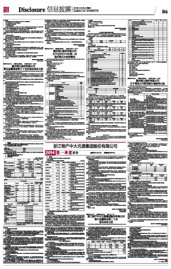 股票代码:600704 股票简称:物产中大 浙江物产中大元通集团股份有限公司2014第一季度报告 2014-04-26 来源:证券时报网 作者: