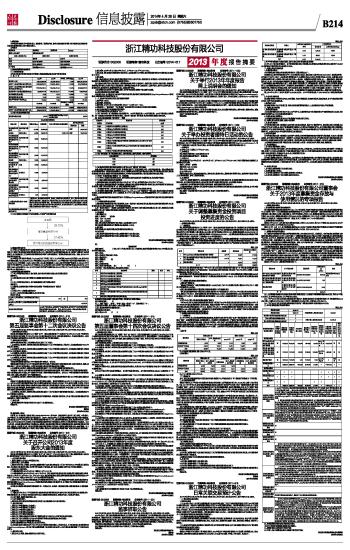 浙江精功科技股份有限公司2013年度报告摘要 2014-04-26 来源:证券时报网 作者:
