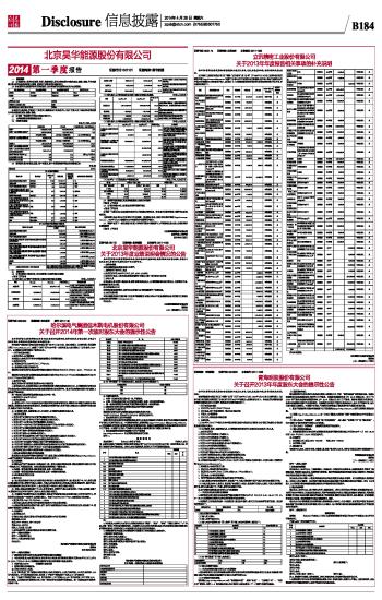 北京昊华能源股份有限公司2014第一季度报告 2014-04-26 来源:证券时报网 作者: