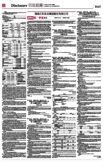 海南正和实业集团股份有限公司2014第一季度报告 2014-04-26 来源:证券时报网 作者: