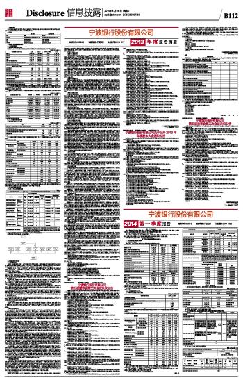 宁波银行股份有限公司2013年度报告摘要 2014-04-26 来源:证券时报网 作者: