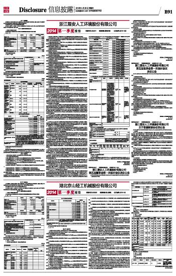 湖北京山轻工机械股份有限公司2014第一季度报告 2014-04-26 来源:证券时报网 作者: