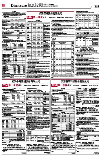 天津鑫茂科技股份有限公司2014第一季度报告 2014-04-26 来源:证券时报网 作者: