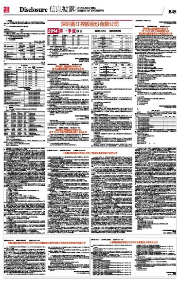 证券代码:600162 证券简称:香江控股 深圳香江控股股份有限公司2014第一季度报告 2014-04-26 来源:证券时报网 作者:
