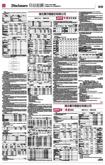 股票代码:600107 股票简称:美尔雅 湖北美尔雅股份有限公司2013年度报告摘要 2014-04-26 来源:证券时报网 作者: