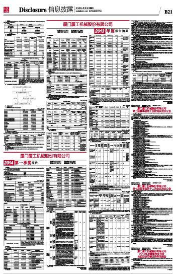 股票代码:600815 股票简称:厦工股份 债券代码:122156 债券简称:12厦工债 厦门厦工机械股份有限公司2013年度报告摘要 2014-04-26 来源:证券时报网 作者: