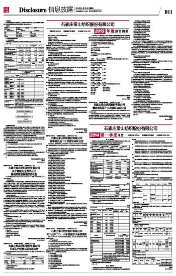 石家庄常山纺织股份有限公司 董事会 2014年4月25日