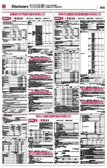 湖北三峡新型建材股份有限公司2014第一季度报告
