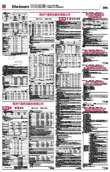 株洲千金药业股份有限公司2013年度报告摘要