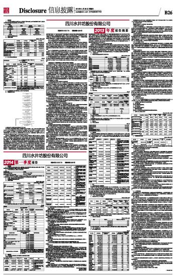 四川水井坊股份有限公司2014第一季度报告