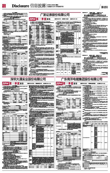 广东南洋电缆集团股份有限公司2014第一季度报告 2014-04-29 来源:证券时报网 作者: