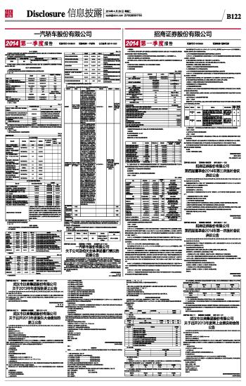 一汽轿车股份有限公司2014第一季度报告 2014-04-29 来源:证券时报网 作者: