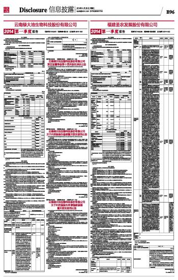 云南绿大地生物科技股份有限公司2014第一季度报告 2014-04-29 来源:证券时报网 作者: