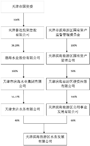 证券代码:000605 证券简称:渤海股份 公告编号:2014-037 渤海水业股份有限公司关于二级控股 子公司对其参股公司提供担保的补充公告 本公司及董事会全体成员保证公告内容的真实、准确和完整,没有虚假记载、误导性陈述或者重大遗漏。 本公司于2014年4月30日在巨潮资讯网(http://www.cninfo.com.cn)、《证券时报》和《中国证券报》披露了《渤海水业股份有限公司关于二级控股子公司对其参股公司提供担保的公告》,现对该公告中涉及的被担保人的控股股东情况进行补充说明。 以下是补充更正后完整的担保公告: 本公司于2014年4月28日召开了第五届董事会第四次会议,审议通过了《关于渤海水业股份有限公司的二级控股子公司对其参股公司提供担保的议案》, 该议案的表决结果为:9票赞成,0票反对,0票弃权。因担保对象滨旅水务资产负债率超过 70%,此议案须经董事会审议通过后提交股东大会审议。 一、担保情况概述 天津龙达水务有限公司(以下简称“龙达水务”)系本公司二级控股子公司,其于2011年10月24日与天津滨海旅游区公用事业发展有限公司(以下简称“公用事业”)共同投资组建了天津滨海旅游区水务发展有限公司(以下简称“滨旅水务”),龙达水务占滨旅水务实收资本的40%。滨旅水务由于业务发展需要,向渤海银行股份有限公司天津滨海新区分行提交授信申请400万元,融资期限为一年,银行方已经做授信批复;同时由于滨旅水务公司进行南部给水泵站项目建设,拟向华夏银行天津分行或其他银行申请授信金额不超过人民币4000万元的项目贷款,期限约为8年,银行方正在进行授信审批流程。按照滨旅水务公司章程相关规定:“公司融资,股东方须按其各自的出资比例,向金融机构提供相应比例的股东担保”,拟由公用事业同龙达水务按照出资比例提供该笔授信担保。担保具体情况如下: 1、被担保单位名称:天津滨海旅游区水务发展有限公司; 2、龙达水务持股比例:40%; 3、贷款银行、拟担保额及担保期限: (1)渤海银行股份有限公司天津滨海新区分行,拟担保金额160万元人民币,借款期限不超过一年,担保期限为债务履行期限届满之日起两年。 (2)华夏银行天津分行或其他银行,拟担保金额1600万元人民币,贷款期限约为8年,担保期限为债务履行期限届满之日起两年。 二、被担保人基本情况 1、被担保人名称:天津滨海旅游区水务发展有限公司 2、成立日期:2011年10月24日 3、注册地:天津滨海旅游区 4、法定代表人:范勇 5、注册资本:1500万元人民币 6、主要经营业务:给排水管道及设施的建设;生产经营自来水、再生水及粗质水;污水处理及回用,雨水、污水排放;雨水再利用;二次供水服务;水质检测(仅供监测站使用);管道听漏、检漏、修漏;向水务业、水资源项目投资;水务业的相关科技开发、投资咨询服务等。 7、主要财务指标:截止2014年第一季度末,滨旅水务资产总额6698.67万元,所有者权益1557.52万元,资产负债率76.75%,营业收入138.71万元,净利润-75.33万元。 8、滨旅水务、滨海水业、渤海水业股权关系图: ■ 9、控股股东情况如下: (1)名称:天津滨海旅游区公用事业发展有限公司 (2)成立日期:2010年11月15日 (3)注册地:天津市滨海旅游区 (4)法定代表人:范勇 (5)企业类型:有限责任公司(法人独资) (6)注册资金: 20000万元人民币 (7)主要经营业务:水、电、燃气、热力等能源的场站、配套设施及管网的投资、建设及管理;通讯配套设施及管网的投资、建设及管理;公交车、出租车、轨道交通、交通艇等城市公共交通类场站、配套设施的投资、建设及管理;绿化、城市道路照明、城市景观及其他城市公用设施的投资、建设及管理;水处理、垃圾处理等场站、配套设施及管网的投资、建设及管理;以自有资金向房地产业、公用事业进行投资;物业管理;上述相关咨询服务。国家有专营专项规定的按专营专项规定办理 本公司与滨旅水务控股股东公用事业发展有限公司不存在关联关系。 三、担保协议的主要内容 1、滨旅水务拟向银行申请授信金额400万元,拟由股东方公用事业公司和龙达水务公司按照出资比例共同提供该笔授信担保,龙达水务担保的金额为授信的40%即160万元,授信期限为1年,贷款用途为采购原水。 2、滨旅水务拟向银行申请南部给水泵站项目贷款授信金额不超过人民币4000万元,拟由股东方公用事业公司和龙达水务公司按照出资比例共同提供该笔授信担保,龙达水务担保的金额为授信的40%即1600万元,贷款期限约为8年,贷款用途为支付南部给水泵站建设施工费用。 四、董事会意见 龙达水务公司依照投资比例对滨旅水务的担保有利于促进其经营发展,公司在对滨旅水务的市场潜力和运营能力进行了全面的了解后,认为其具备长远的发展潜力,同意本次担保,该担保议案尚需提交经股东大会审议。 五、累计对外担保数量及逾期担保的数量 截止披露日,上市公司对外担保的总额为1.4亿,对控股子公司的担保总额为0元,占上市公司最近一期经审计净资产的比例60.08%,占置入资产最近一期经审计净资产的比例为19.7%,逾期担保累计金额为0元。 特此公告。 渤海水业股份有限公司董事会 2014年4月30日