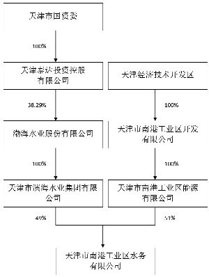 证券代码:000605 证券简称:渤海股份 公告编号:2014-038 渤海水业股份有限公司全资子公司对 其参股公司提供担保的补充公告 本公司及董事会全体成员保证公告内容的真实、准确和完整,没有虚假记载、误导性陈述或者重大遗漏。 本公司于2014年4月30日在巨潮资讯网(http://www.cninfo.com.cn)、《证券时报》和《中国证券报》披露了《关于渤海水业股份有限公司全资子公司对其参股公司提供担保的公告》,现对该公告中涉及的被担保人的控股股东情况进行补充说明,同时对原公告中“南港水务与滨海水业、渤海水业的产权与控制关系”图进行更正。 以下是补充更正后完整的担保公告: 本公司于2014年4月28日召开了第五届董事会第四次会议,审议通过了《关于渤海水业股份有限公司的全资子公司对其参股公司提供担保的议案》,该议案的表决结果为:9票赞成,0票反对,0票弃权。此议案尚需提交股东大会审议。 一、担保情况概述 天津市南港工业区水务有限公司(以下简称“南港水务”)于2010年12月7日成立,是由本公司全资子公司天津市滨海水业集团有限公司(以下简称“滨海水业”)与天津市南港工业区能源有限公司(以下简称“能源公司”)共同出资组建,注册资本金1亿元人民币。其中,能源公司出资5,100万元,占51%股份;滨海水业出资4,900万元,占49%股份。 现南港水务由于经营发展的需要,需向银行进行融资贷款,3-5年内预计融资额度不高于1亿元。南港水务正在与银行之间进行融资接洽、沟通及谈判,在最终确立融资方案,取得授信批复后,需要股东方按照其各自的出资比例,向金融机构提供相应比例的股东担保。 担保具体情况如下: 1、被担保单位名称:天津市南港工业区水务有限公司; 2、滨海水业持股比例:49%; 3、拟担保额:不高于4,900万元人民币; 4、贷款银行:拟向农商行融资贷款,但不排除其他银行; 5、担保期限:担保期限同贷款期限。南港水务等土地确权确认下来,工程手续补办完毕后,将用土地和地上建筑物抵押给贷款银行置换股东担保,股东担保期限终止。 二、被担保人基本情况 1、被担保人名称:天津市南港工业区水务有限公司 2、成立日期:2010年12月07日 3、注册地:天津开发区南港工业区 4、法定代表人:贺志雄 5、注册资本:1亿元人民币 6、主要经营业务:工业企业用水供应以及相关水务服务;生活饮用水供应;集中供水服务;供水设施施工、管理、维修和保养;水管件销售;水务项目投资、设计、建设、管理、经营、技术咨询及配套服务等。 7、截止2014年第一季度末,南港水务公司资产总额12072.21万元,所有者权益8687.48万元,资产负债率28.02%,营业收入116.83万元,净利润-253.84万元。 8、南港水务与滨海水业、渤海水业的产权与控制关系如下: ■ 9、控股股东情况说明: (1)控股股东名称:天津市南港工业区能源有限公司 (2)成立日期:2010年04月28日 (3)注册地:天津开发区南港工业区 (4)法定代表人:贺志雄 (5)企业类型:有限责任公司(法人独资) (6)注册资金: 23550万元人民币 (7)经营范围:自来水、燃气、蒸汽的供应和销售(前述经营范围涉及许可证的凭许可证经营)以及相关工程施工;设备安装及技术咨询服务;管廊、通讯、路灯等基础设施建设、维修及运营服务;污水收集、处理、排放及相关服务;上述经营范围内相关设备、仪器仪表的安装及销售;上述经营范围内基础设施、构筑物及相关设备的租赁。(以上经营范围涉及行业许可的凭许可证件,在有效期限内经营,国家有专营规定的按规定办理)。 本公司与南港水务控股股东能源公司不存在关联关系。 三、担保协议的主要内容 南港水务拟向银行申请融资贷款,3-5年内预计融资额度不高于1亿元,拟由股东方滨海水业和能源公司按照出资比例共同提供融资担保,滨海水业担保的金额为出资比例的49%,即不高于4,900万元,融资期限不超过5年,贷款用途为南港输配水中心(一期)工程、土地出让金、营运资金等。 四、董事会意见 滨海水业为南港水务提供担保的主要目的是为了满足其经营发展的需求,本次担保为全资子公司对其参股公司提供的担保,不存在不可控的担保风险。 五、累计对外担保数量及逾期担保的数量 截止披露日,上市公司对外担保的总额为1.4亿,对控股子公司的担保总额为0元,占上市公司最近一期经审计净资产的比例60.08%,占置入资产最近一期经审计净资产的比例为19.7%,逾期担保累计金额为0元。 特此公告。 渤海水业股份有限公司董事会 2014年4月30日