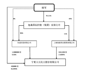 证券代码:600146 证券简称:大元股份 编号:临-2014-041 宁夏大元化工股份有限公司关于第一大股东及实际控制人变更的提示性公告 本公司董事会及全体董事保证本公告内容不存在任何虚假记载、误导性陈述或者重大遗漏,并对其内容的真实性、准确性和完整性承担个别及连带责任。 重要内容提示: ●本次变动属于增持,不触及要约收购。 ●本次变动将导致公司控股股东及实际控制人发生变化。 2014年4月15日,宁夏大元化工股份有限公司(以下简称“公司”、“大元股份”)股东乐源控股有限公司(以下简称“乐源控股”)与上海泓泽世纪投资发展有限公司(以下简称“上海泓泽”)、上海旭森世纪投资有限公司(以下简称“旭森世纪”)分别签订了《股权转让协议》。乐源控股受让上海泓泽持有的大元股份6,800,000股股份(占大元股份总股本3.4%),受让旭森世纪持有的大元股份2,953,800股股份(占大元股份总股本1.4769%)。 本次受让前,乐源控股持有大元股份1,546,200股股份(占大元股份总股本0.7731%)。本次受让完成后,乐源控股持有大元股份11,300,000股股份(占大元股份总股本5.65%),成为大元股份第一大股东。 本次转让前,旭森世纪持有大元股份7,995,000股股份(占大元股份总股本3.9975%)。本次转让完成后,旭森世纪持有大元股份5,041,200股股份(占大元股份总股本2.5206%)。 杨军先生个人持有大元股份458,800股股份(占大元股份总股本0.2294%)。 杨军先生为乐源控股及旭森世纪的实际控制人,三者为一致行动人。上述变动完成后,杨军先生实际持有大元股份16,800,000股股份(占大元股份总股本8.4%),成为大元股份的实际控制人。 上述变动完成后,杨军先生对大元股份的控制结构图如下: ■ 具体情况详见同日披露的杨军先生及乐源控股作为信息披露义务人的详式权益变动报告书。 特此公告。 宁夏大元化工股份有限公司 2014年5月7日