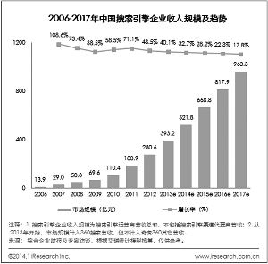 2013年,移动搜索实现了快速发展,用户数量及流量上升、流量价值上升、广告主数量上升、广告单价上升,几方面共同推动了移动搜索收入的增长。 截至2013年12月,我国搜索引擎用户规模为4.90亿,较2012年底增长了3,856万人,同比增长了8.5%;中国手机搜索网民数达3.65亿,较去年同期增长了25.3%。手机搜索网民快速增长,是近两年来整体搜索引擎增长的主要动力。 随着移动网民数量的不断增长以及网民使用移动搜索的习惯逐步形成,未来移动搜索流量还将持续增长。同时,随着广告主对移动搜索广告的了解和认识程度的加深,未来将有更多的广告主选择投放移动搜索广告。在二者的共同推动下,未来移动搜索广告将会 (下转B11版) 本版导读: