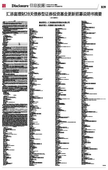汇添富理财28天债券型证券投资基金更新招募说明书摘要(2014年第1号) 2014-05-31 来源:证券时报网 作者: