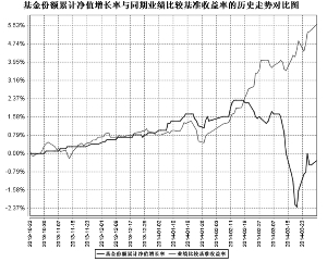 (4)报告期末持有的处于转股期的可转换债券明细 本基金本报告期末未持有处于转股期的可转换债券。 (5)报告期末前十名股票中存在流通受限情况的说明 本基金本报告期末未持有股票。 (6)投资组合报告附注的其他文字描述部分 由于四舍五入的原因,投资组合报告中数字分项之和与合计项之间可能存在尾差。 十三、基金的业绩 基金管理人承诺以诚实信用、勤勉尽责的原则管理和运用基金财产,但不保证基金一定盈利,也不保证最低收益。基金的过往业绩并不代表其未来表现。投资有风险,投资人在做出投资决策前应仔细阅读本基金的招募说明书。 1、本基金基金合同生效以来的投资业绩与同期基准的比较如下表所示(本报告中所列财务数据未经审计):