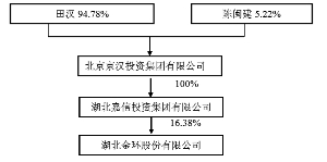 湖北金环股份有限公司 详式权益变动报告书 上市公司: 名 称:湖北金环股份有限公司 上市地点:深圳证券交易所 股票简称:湖北金环 股票代码:000615 信息披露义务人: 名 称:北京京汉投资集团有限公司 住 所、通讯地址:北京市石景山区实兴东街8号院1号楼3层 联系电话:010-52659617 股份变动性质:增加 签署日期:2014年6月5日 信息披露义务人声明 信息披露义务人承诺本权益变动报告书不存在虚假记载、误导性陈述或重大遗漏,并对其真实性、准确性、完整性承担个别和连带的法律责任。 一、信息披露义务人依据《中华人民共和国证券法》(以下简称《证券法》)、《上市公司收购管理办法》(以下简称《收购办法》)、《公开发行证券的公司信息披露内容与格式准则第15号——权益变动报告书》(以下简称《准则15号》及其他相关法律、法规和规范性文件编制本报告书。 二、依据《证券法》、《收购办法》的规定,本报告书已全面披露信息披露义务人在湖北金环股份有限公司(以下简称“湖北金环”)拥有权益的股份。截至本报告书签署之日,除本报告书披露的持股信息外,信息披露义务人没有通过任何其他方式在湖北金环拥有权益。 三、信息披露义务人签署本报告书已获得必要的授权和批准,其履行亦不违反信息披露义务人公司章程或内部规则中的任何条款,或与之相冲突。 四、本次权益变动是根据本报告书所载明的资料进行的。除本信息披露义务人外,没有委托或者授权任何其他人提供未在本报告书中列载的信息和对本报告书做出任何解释或者说明。 释 义 本报告书中,除非另有说明,下列简称具有以下含义: ■ 第一节 信息披露义务人介绍 一、信息披露义务人基本情况 ■ 二、信息披露义务人股权结构、实际控制人及股权控制关系 (一)信息披露义务人股权结构 截至本报告书披露之日,京汉投资股权结构如下: ■ (二)信息披露义务人实际控制人及股权控制关系 1、信息披露义务人实际控制人基本情况 信息披露义务人的控股股东及实际控制人均为田汉。 ■ 2、信息披露义务人股权控制关系结构图 截至本报告书签署之日,信息披露义务人股权控制关系结构图如下: ■ 3、信息披露义务人控股股东和实际控制人所控制的核心及关联企业情况 截至本报告书签署之日,信息披露义务人控股股东和实际控制人所控制的核心及关联企业的股权控制关系结构图如下: ■ 除京汉投资外,实际控制人控制的核心企业和核心业务、关联企业及主营业务情况如下: ■ 三、信息披露义务人从事的主要业务及财务状况 信息披露义务人的主营业务为投资及投资管理、信息咨询,最近三年的主要财务数据如下(以上数据均业经审计): 单位:万元 ■ 四、信息披露义务人最近5年受处罚、涉及重大诉讼或仲裁情况 信息披露义务人最近五年内,不存在受到过与证券市场相关的行政处罚、刑事处罚的情形,也不存在涉及与经济纠纷有关的重大民事诉讼或仲裁的情况。 五、信息披露义务人董事、监事、高级管理人员基本情况 ■ 上述人员最近5年内均不存在受到过与证券市场相关的行政处罚、刑事处罚的情形,也不存在涉及与经济纠纷有关的重大民事诉讼或仲裁的情况。 六、信息披露义务人持有、控制其他上市公司已发行股份的情况 截至本报告书签署之日,信息披露义务人不存在持有、控制其他上市公司5%以上已发行股份的情况。 第二节 权益变动目的及相关程序 一、权益变动目的 信息披露义务人持有上市公司股份的目的是为了获得较好的股权投资收益,在条件成熟时利用上市公司平台对优质资产进行有效整合。 二、未来12个月内增持或处置上市公司股份的计划 截至本报告书签署之日,信息披露义务人不排除在未来12个月内继续增加在湖北金环拥有权益股份的可能性。若未来信息披露义务人增持上市公司股份,信息披露义务人将按照相关法律法规的要求,依法履行相关批准程序及信息披露义务。 信息披露义务人已出具《承诺函》,本次权益变动所获得的全部股份在未来十二 个月内不上市交易或转让。 第三节 权益变动方式 一、信息披露义务人在本次权益变动前后的持股情况 本次权益变动前,信息披露义务人未持有湖北金环任何股份。本次权益变动完成后,京汉投资拥有嘉信集团100%的股权,从而间接持有湖北金环16.38%的股份并成为其间接控股股东。 二、本次权益变动的具体情况 2014年3月12日,鉴于嘉信集团实际控制人朱俊峰于借款期限届满后,未能如约偿还借款本金人民币20,800万元及其利息,款项出借人京汉投资为依法维护自身合法权益,依据《中华人民共和国民事诉讼法》向北京市第一中级人民法院提起诉讼,请求法院依法保护其合法权益。 2014年5月26日,经北京市第一中级人民法院调解,相关各方达成《调解协议》,朱俊峰夫妇同意以其合计持有的嘉信集团100%股权抵偿朱俊峰欠付京汉投资的借款本金人民币20,800万元及其利息。2014年5月26日,北京市第一中级人民法院下发(2014)一中民初字第3305号《民事调解书》,对已经生效的调解协议进行书面确认,作为申请强制执行的司法凭证。 2013年5月30日,已经办理完毕嘉信集团股权变更手续,湖北省工商行政管理局于2014年5月30日出具了变更通知书。 本次权益变动前后控制关系变动图如下: 变更前: ■ 变更后: ■ 三、《调解协议》