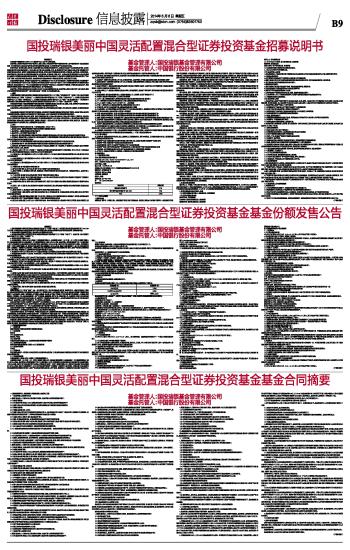 基金管理人:国投瑞银基金管理有限公司 基金托管人:中国银行股份有限公司 [重要提示] 1、国投瑞银美丽中国灵活配置混合型证券投资基金(以下简称“本基金”)的募集已获中国证监会证监许可【2014】492号文注册。中国证监会对本基金的注册并不代表中国证监会对本基金的风险和收益作出实质性判断、推荐或者保证。 2、本基金是混合型证券投资基金,基金运作方式是契约型开放式。 3、本基金的基金管理人和注册登记机构为国投瑞银基金管理有限公司(以下简称“本公司”),基金托管人为中国银行股份有限公司(以下简称“中国银行”)。 4、本基金的认购代码为000663。 5、本基金募集的上限为10亿元人民币(不包括募集期利息)。在募集期内任何一天(含第一天),若当日募集时间截止后,本基金募集总规模(以认购金额计,不含募集期间利息)超过10亿元人民币,基金管理人将结束募集并于次日在指定媒体上公告。若募集期内本基金接受的有效认购申请总金额未超过10亿元人民币,则对所有有效认购申请予以确认。若募集期内任何一天当日募集时间截止后,接受的有效认购申请总金额超过10亿元人民币,则该日为募集结束日,该日的有效认购申请采用“比例确认”的原则予以部分确认,未确认部分的认购款项将在募集期结束后退还给投资者,由此产生的利息等损失由投资人自行承担;募集结束日之前提交的有效认购申请全部予以确认。 6、本基金自2014年6月9日至2014年6月20日通过基金管理人的直销网点及基金代销机构的代销网点公开发售。 7、本基金发售对象包括个人投资者、机构投资者、合格境外机构投资者及法律法规或中国证监会允许购买开放式证券投资基金的其他投资者。 8、投资者欲认购本基金,需开立本公司开放式基金账户。除法律法规另有规定外,每个投资者仅限开立和使用一个本公司基金账户。已经开立本公司开放式基金账户的投资者可免于办理开户。 9、募集期内,投资者可对本基金进行多次认购,认购申请一经受理,不得撤销。投资者应保证用于认购的资金来源合法,投资者应有权自行支配,不存在任何法律上、合约上或其他障碍。 10、投资者在销售机构网点(包括国投瑞银基金直销中心)首次认购本基金份额的单笔最低限额为人民币1,000元,追加认购单笔最低限额为人民币1,000元。 11、投资者认购款项在募集期内产生的利息将折合成基金份额归投资者所有,其中利息转份额以基金注册登记机构的记录为准。 12、销售机构对投资者认购申请的受理并不表示对该申请的成功确认,而仅代表销售机构确实接受了认购申请,认购申请成功与否及其确认情况应以本基金《基金合同》生效后基金注册登记机构的确认为准。投资者可在《基金合同》生效后第2个工作日起到各销售网点查询认购申请确认情况和认购的基金份额。 13、各代销机构的代销网点以及开户、认购等事项的详细情况请向各代销机构咨询。对未开设销售网点的地方的投资者,请拨打本公司的客户服务电话(400-880-6868)咨询购买事宜。 14、在募集期间,本基金有可能新增代销机构,敬请留意近期本公司及各代销机构的公告,或拨打本公司及各代销机构客户服务电话咨询。 15、本基金管理人可综合各种情况对基金份额的发售安排做适当调整。 16、风险提示: 证券投资基金(以下简称“基金”)是一种长期投资工具,其主要功能是分散投资,降低投资单一证券所带来的个别风险。本基金的投资范围为具有良好流动性的金融工具,包括国内依法上市的股票(包括中小板、创业板及其他经中国证监会核准发行上市的股票)、债券(包括国债、央行票据、金融债、企业债、公司债、可转债(含可分离交易可转换债券)、次级债、短期融资券、中期票据、中小企业私募债券等)、资产支持证券、债券回购、银行存款、货币市场工具、股指期货、权证以及法律法规或中国证监会允许基金投资的其它金融工具(但须符合中国证监会的相关规定)。如法律法规或监管机构以后允许基金投资其他品种,基金管理人在履行适当程序后,可以将其纳入投资范围。 基金的投资组合比例为:股票资产占基金资产的比例范围为0%-95%;投资于本基金定义的美丽中国主题相关的证券资产不低于基金非现金资产的80%;投资于权证的比例不超过基金资产的3%;每个交易日日终在扣除股指期货合约需缴纳的交易保证金后,现金或到期日在一年以内的政府债券不低于基金资产净值的5%。 基金在投资运作过程中可能遇到各种风险,既包括市场风险(政策风险、经济周期风险、利率风险、再投资风险、购买力风险、流动性风险等),也包括基金自身的管理风险、技术风险和合规风险等。 本基金为混合型基金,属于中高风险、中高收益的基金品种,其预期风险和预期收益高于债券型基金和货币市场基金,低于股票型基金。投资者应当认真阅读《基金合同》、《招募说明书》等基金法律文件,了解基金的风险收益特征,根据自身的投资目的、投资期限、投资经验、资产状况等判断基金是否和自身的风险承受能力相适应,并通过基金管理人或基金管理人委托的具有基金代销业务资格的其他机构购买和赎回基金,基金代销机构名单详见本《发售公告》以及其他相关公告。 基金管理人承诺以诚实信用、勤勉尽责的原则管理和运用基金资产,但不保证本基