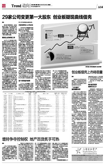 29家公司变更第一大股东 创业板疑现曲线借壳
