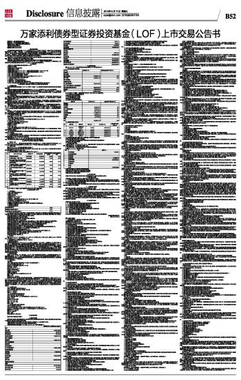 万家添利债券型证券投资基金(LOF)上市交易公告书