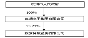证券代码:000909 证券简称:数源科技 公告编号:2014- 24 数源科技股份有限公司 关于对外担保的公告 本公司及董事会全体成员保证信息披露的内容真实、准确、完整,没有虚假记载、误导性陈述或重大遗漏。 一、担保情况概述 2014年6月30日,公司第六届董事会第一次会议审议并通过了《关 于对外担保的议案》。目前,公司存在由控股股东西湖电子集团有限公司实施担保的贷款金额40,500万元,根据贷款互保的要求,现同意公司为西湖电子集团有限公司贷款,提供连带责任担保,金额40,500 万元, 担保有效期为自股东大会批准之日起的5年。 根据中国证监会《关于规范上市公司对外担保行为的通知》和公司章程等有关规定,本次担保须提请公司2014年第一次临时股东大会审议批准。 二、被担保人基本情况 1.被担保人名称:西湖电子集团有限公司 (1)成立日期:1995年9月18日 (2)注册地点:杭州 (3)法定代表人:章国经 (4)注册资本:26600万元 (5)经营范围:批发、零售、技术开发:视频产品,音响设备,数字移动通信系统及设备等。服务:物业管理 (6)与上市公司的关联关系:本公司的控股股东。 (7)产权及控制关系的方框图 ■ (8)截至2013年12月31日主要财务数据