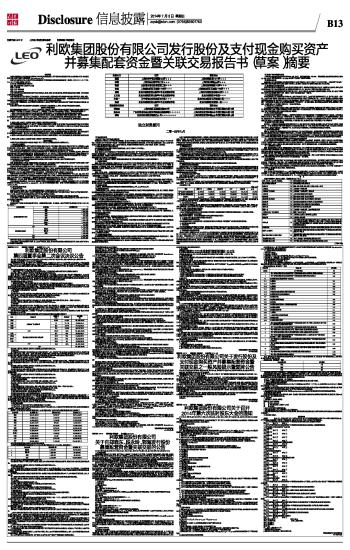 证券代码:002131 上市地:深圳证券交易所 证券简称:利欧股份 利欧集团股份有限公司发行股份及支付现金购买资产并募集配套资金暨关联交易报告书(草案)摘要 2014-07-03 来源:证券时报网 作者: