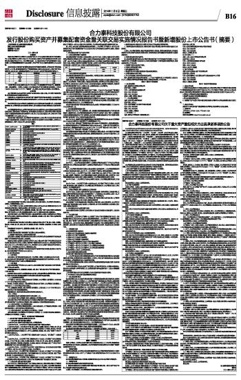 合力泰科技股份有限公司发行股份购买资产并募集配套资金暨关联交易实施情况报告书暨新增股份上市公告书(摘要)