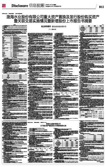 | 渤海水业股份有限公司重大资产置换及发行股份购买资产 暨关联交易实施情况暨新增股份上市报告书摘要 | 2014-07-11 | |